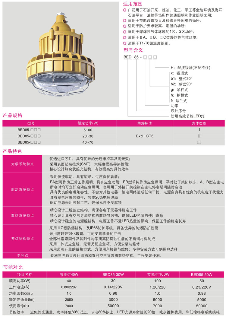 BED85系列防爆高效节能LED灯(ⅡC、DIP)