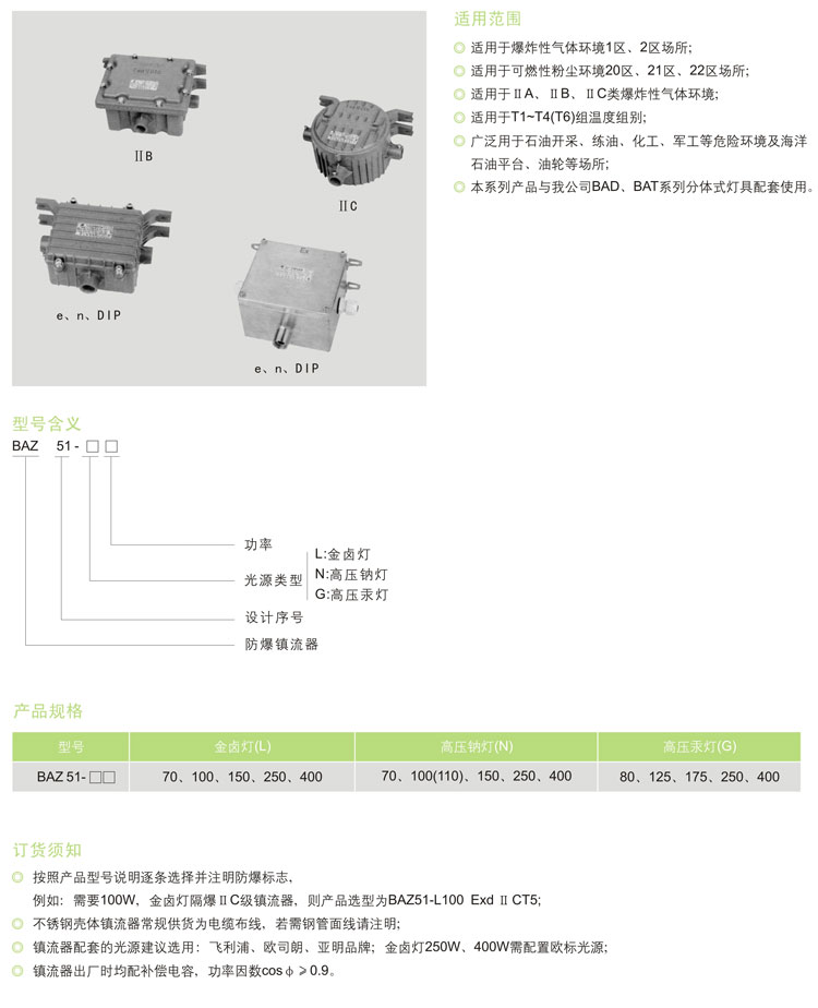 BAZ51防爆镇流器(e、n、ⅡB、ⅡC、DIP)