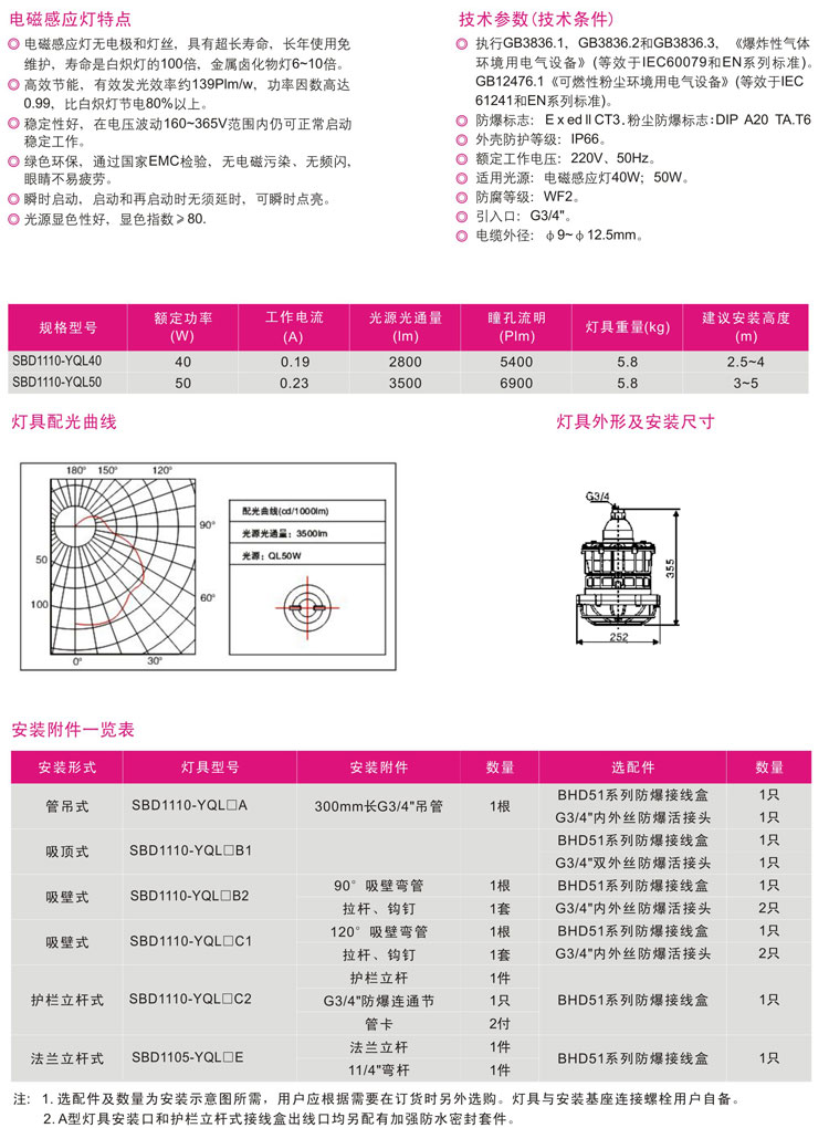 SBD1110-YQL免维护节能防爆灯(ⅡC、DIP)