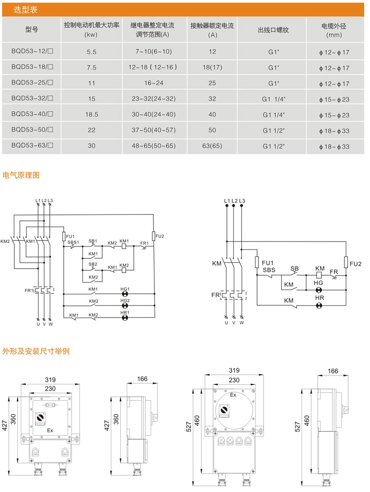 BQD53系列防爆电磁起动器(ⅡB、ⅡC、DIP)
