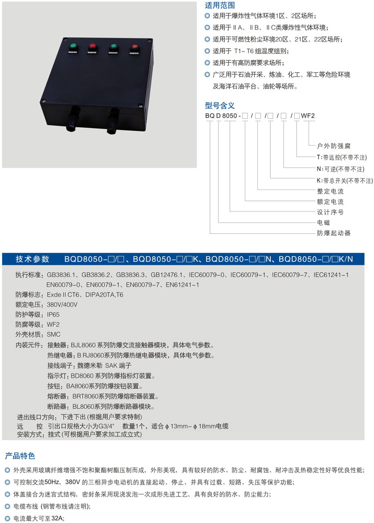 BQD8050系列防爆防腐电磁起动器(ⅡC、DIP)