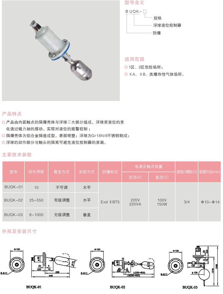 BUQK系列防爆浮球液位控制器(ⅡB)