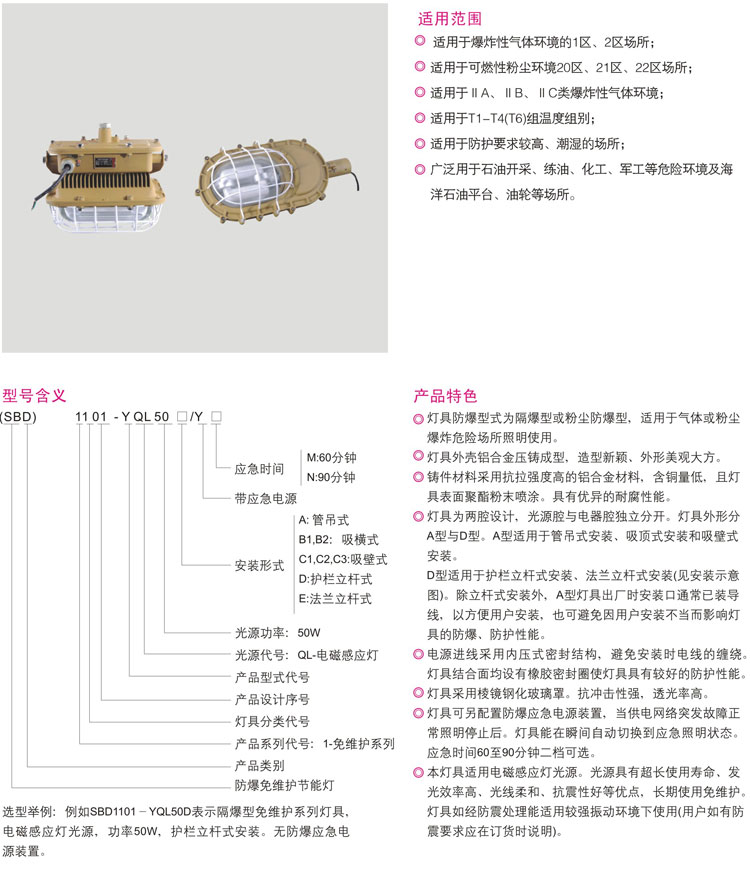 SBD1101-YQL50免维护节能防爆灯(ⅡC、DIP)
